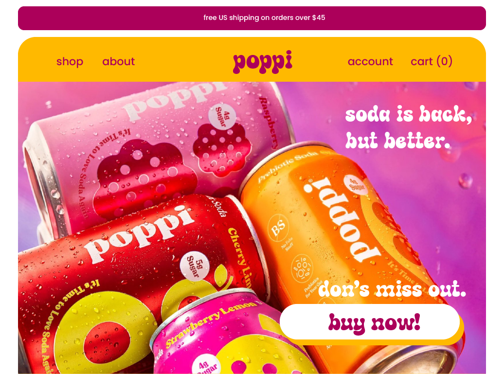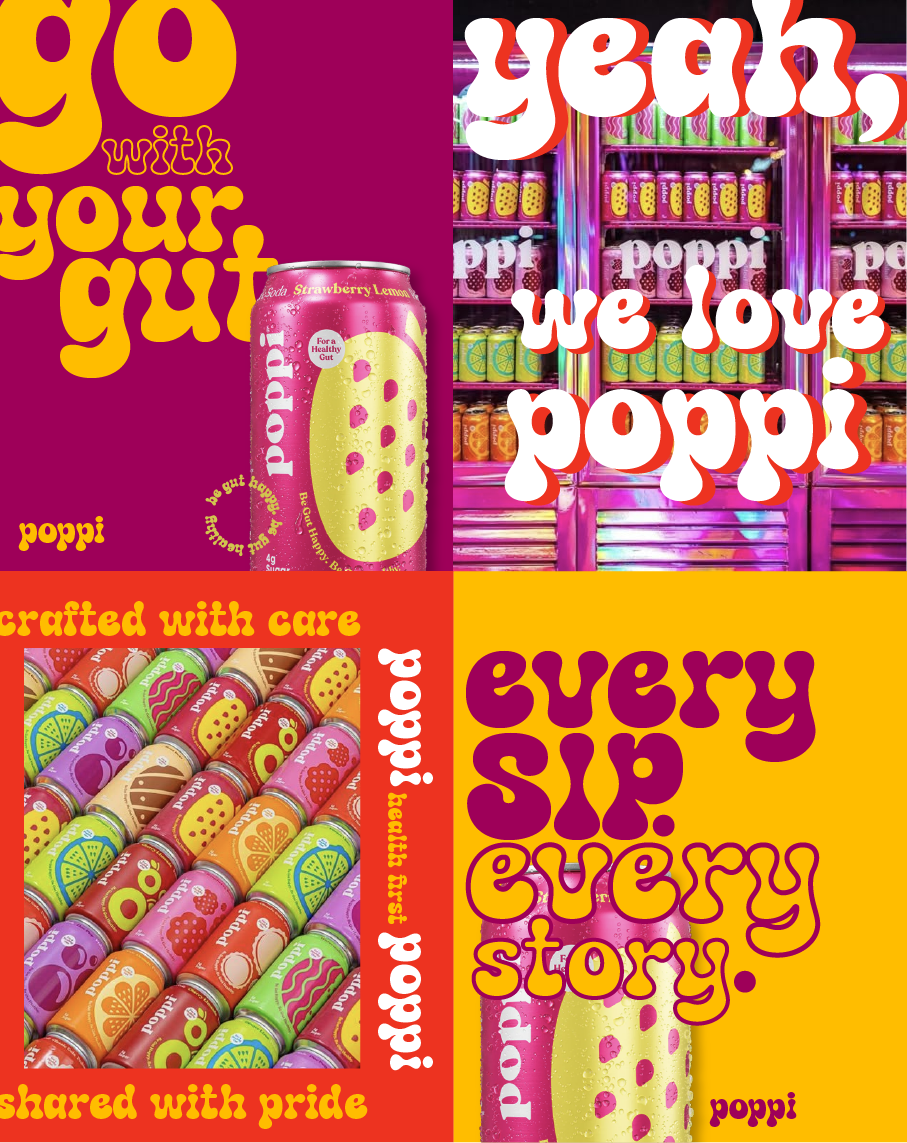 A self-led project for a reimagined brand design and marketing campaign for Poppi, a prebiotic soda brand that aims to provide a healthier alternative to traditional soda.